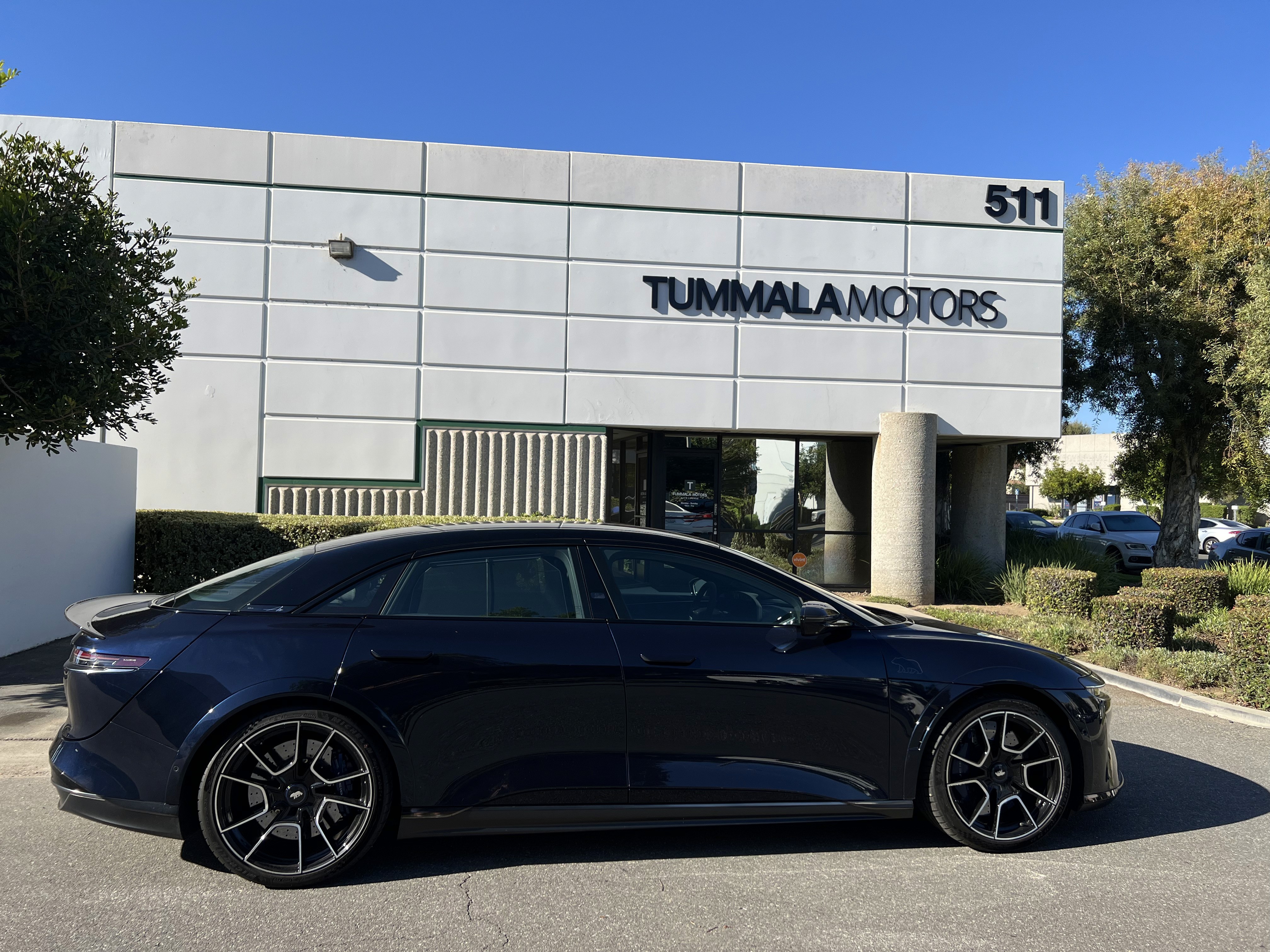 This 2025 Lucid Air Sapphire (#118), with very few examples in the world, is an all-electric luxury sedan that combines stunning performance with everyday usability. Powered by a tri-motor all-wheel-drive system delivering 1,234 horsepower, it accelerates from 0-60 mph in 1.9 seconds, completes the quarter-mile in 9.1 seconds at 155 mph, and offers an EPA-estimated range of 427 miles on a single charge. Its aerodynamic design, advanced suspension, and high-tech interior provide sharp handling and comfort for up to five passengers, with features like a spacious cabin and rapid charging capabilities. This vehicle is protected with full-body paint protection film (PPF), ensuring its stunning finish stays pristine against scratches, chips, and environmental damage.